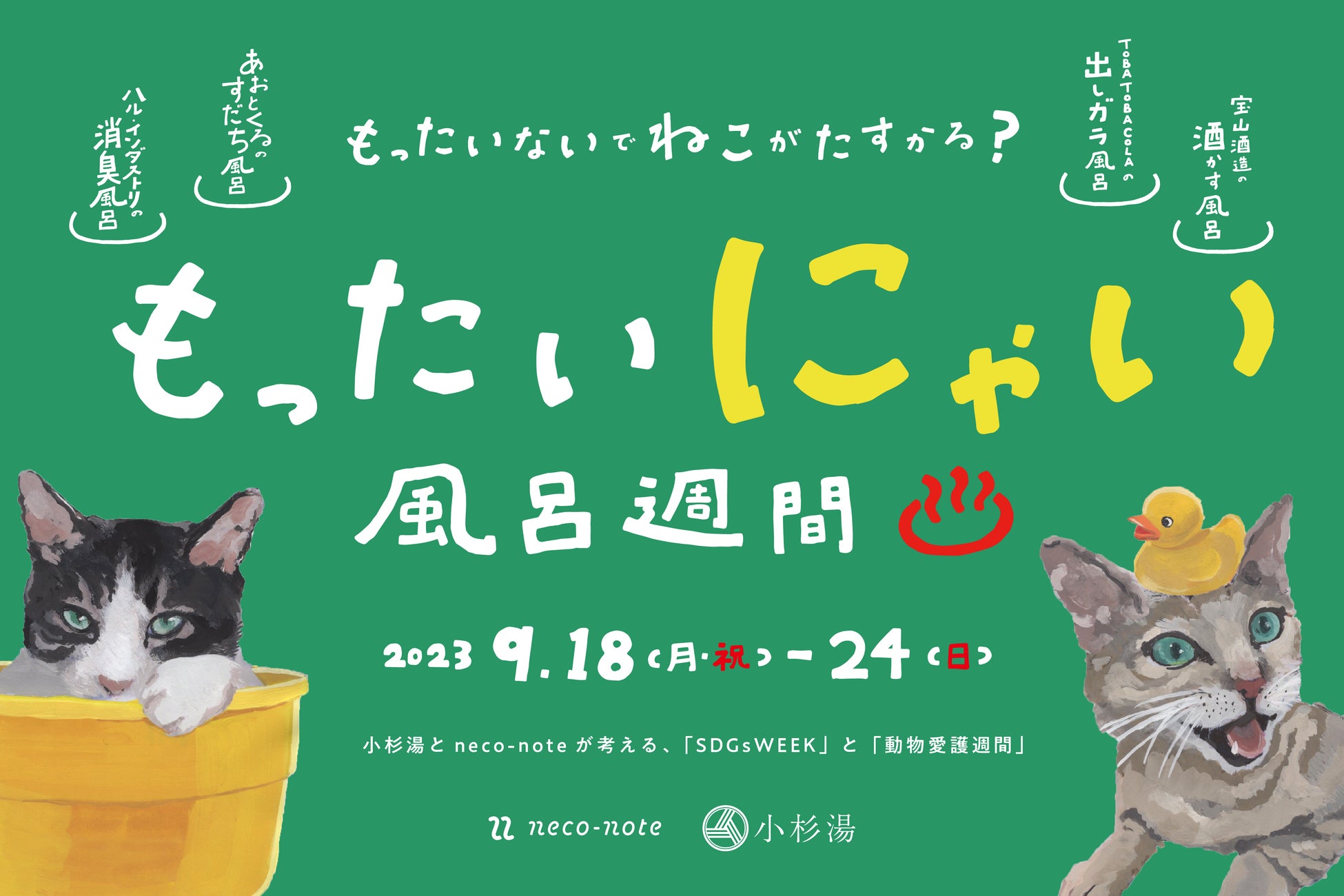 お風呂に浸かるだけで、猫助け。動物愛護週間に、高円寺の銭湯「小杉湯」と猫の推し活サービス「neco-note」がコラボした「もったいにゃい風呂」を開催