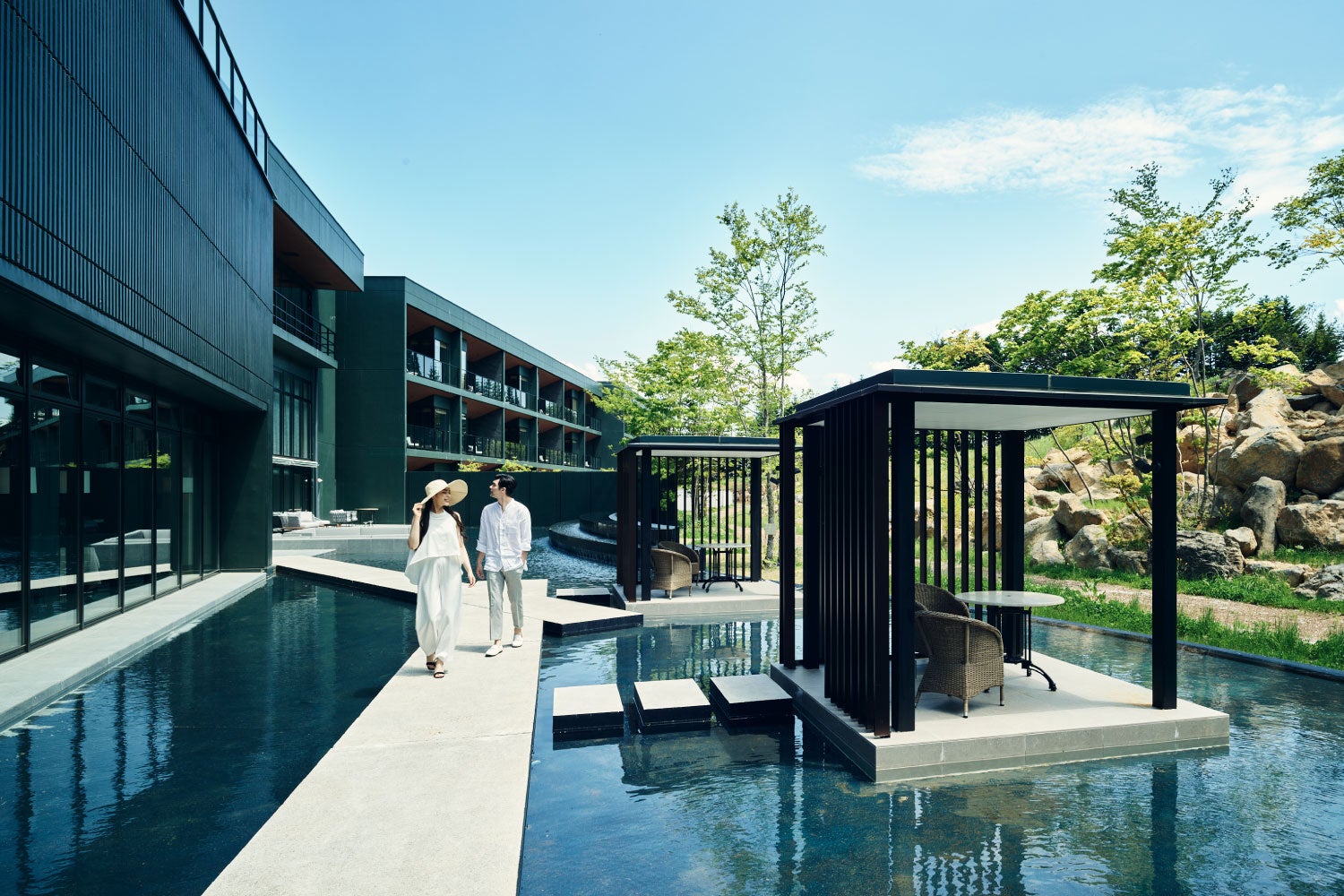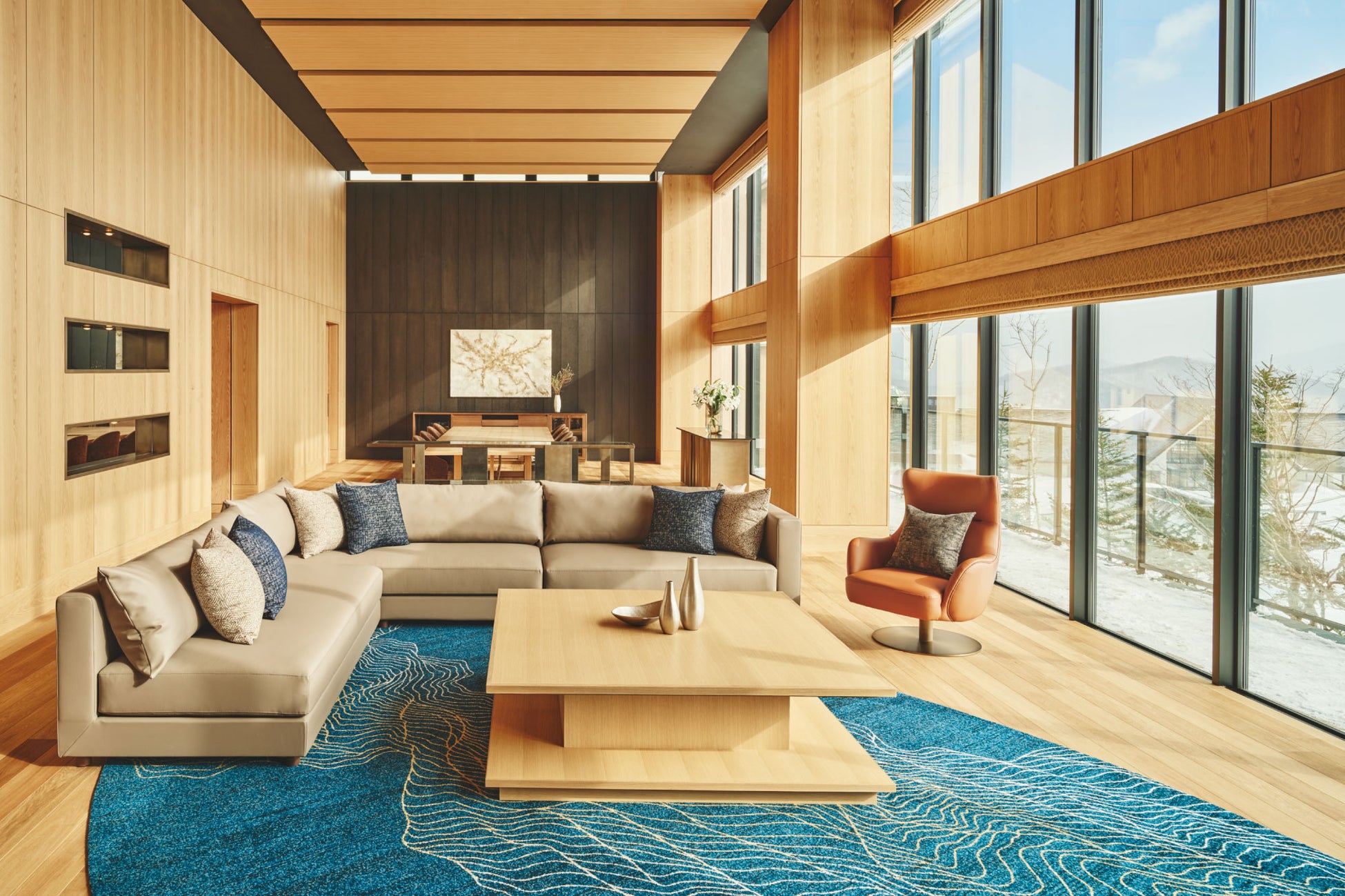 全38室の客室は、冬は白銀のスノーゲレンデ、夏は太陽に映える緑の山並みを臨むことができます。温かみのある木目を活かした高級感のあるインテリアの客室は全部で7タイプ。うち5タイプにはゲレンデに面した檜風呂のビューバスが併設されています。その他、至福の時間をお過ごしいただけるラウンジ、山を望むように開けた屋上ビューテラス(グリーン期営業)、岩風呂と檜風呂の2種類の浴槽を配した温泉大浴場にサウナ、究極にパーソナルな美食体験をご提供するダイニングとバー、24時間利用いただけるジムなど、贅沢な施設を擁しています。