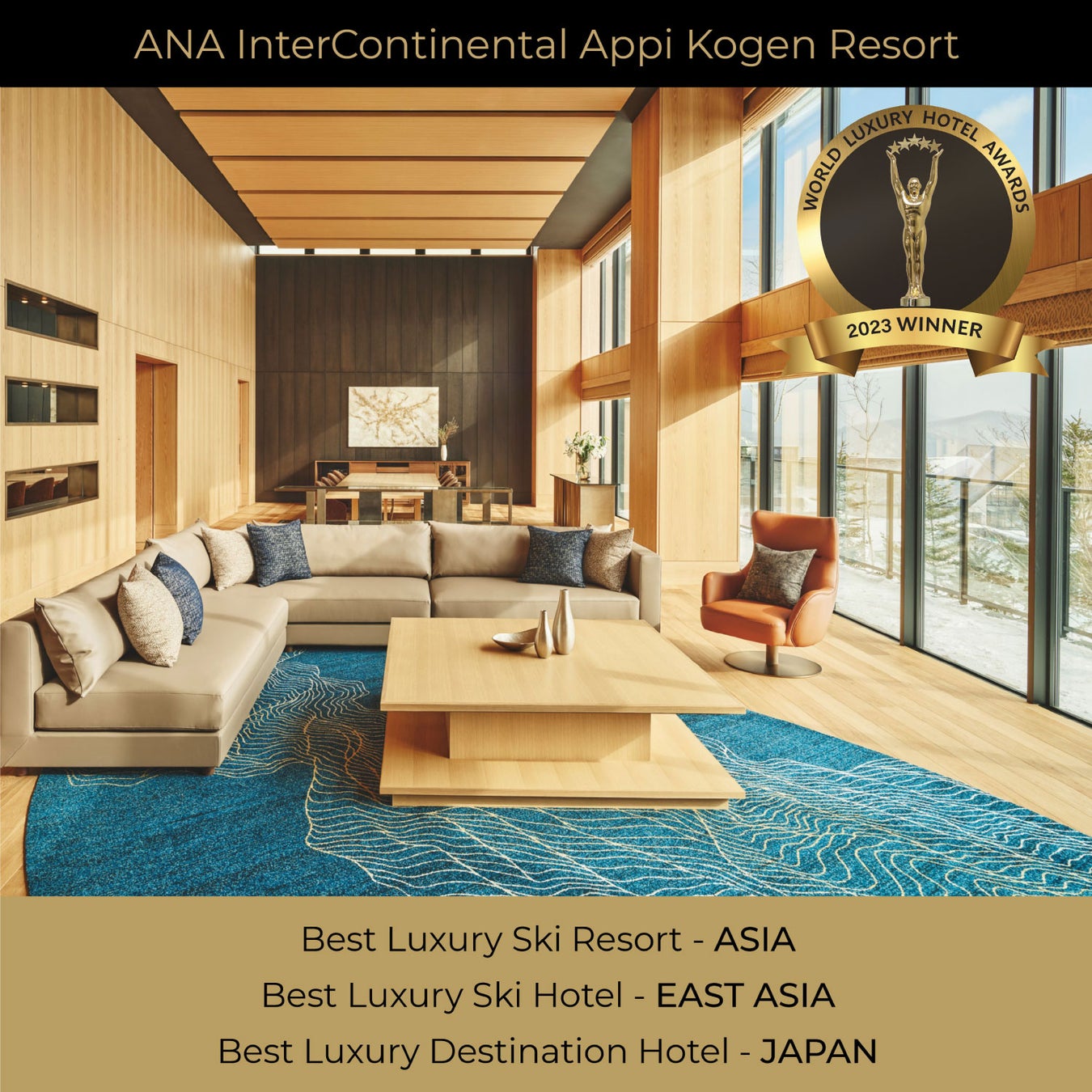 株式会社岩手ホテルアンドリゾート(本社:岩手県盛岡市、代表取締役社長:山形 明)が運営するANAインターコンチネンタル安比高原リゾート(岩手県八幡平市、2022年2月25日開業、客室数38室)は2023年10月30日、旅行業界のアカデミー賞とも賞される「2023 WORLD LUXURY HOTEL AWARDS(ワールド・ラグジュアリー・ホテル・アワード)」を2年連続、しかも2023年は3部門での受賞となりました。