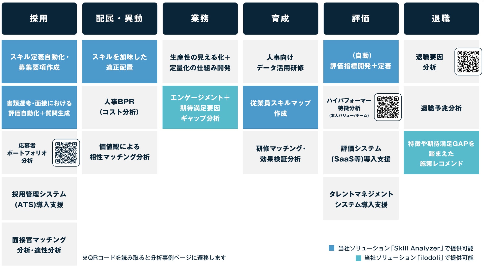アポロでは、様々な業界の企業から依頼を受け、DX・AI化テーマに対応しており、その中でも人事データを活用した事例も多数行っております。また、個人の価値観やエンゲージメントを測る組織改善サービス「ilodoli」も提供しています。