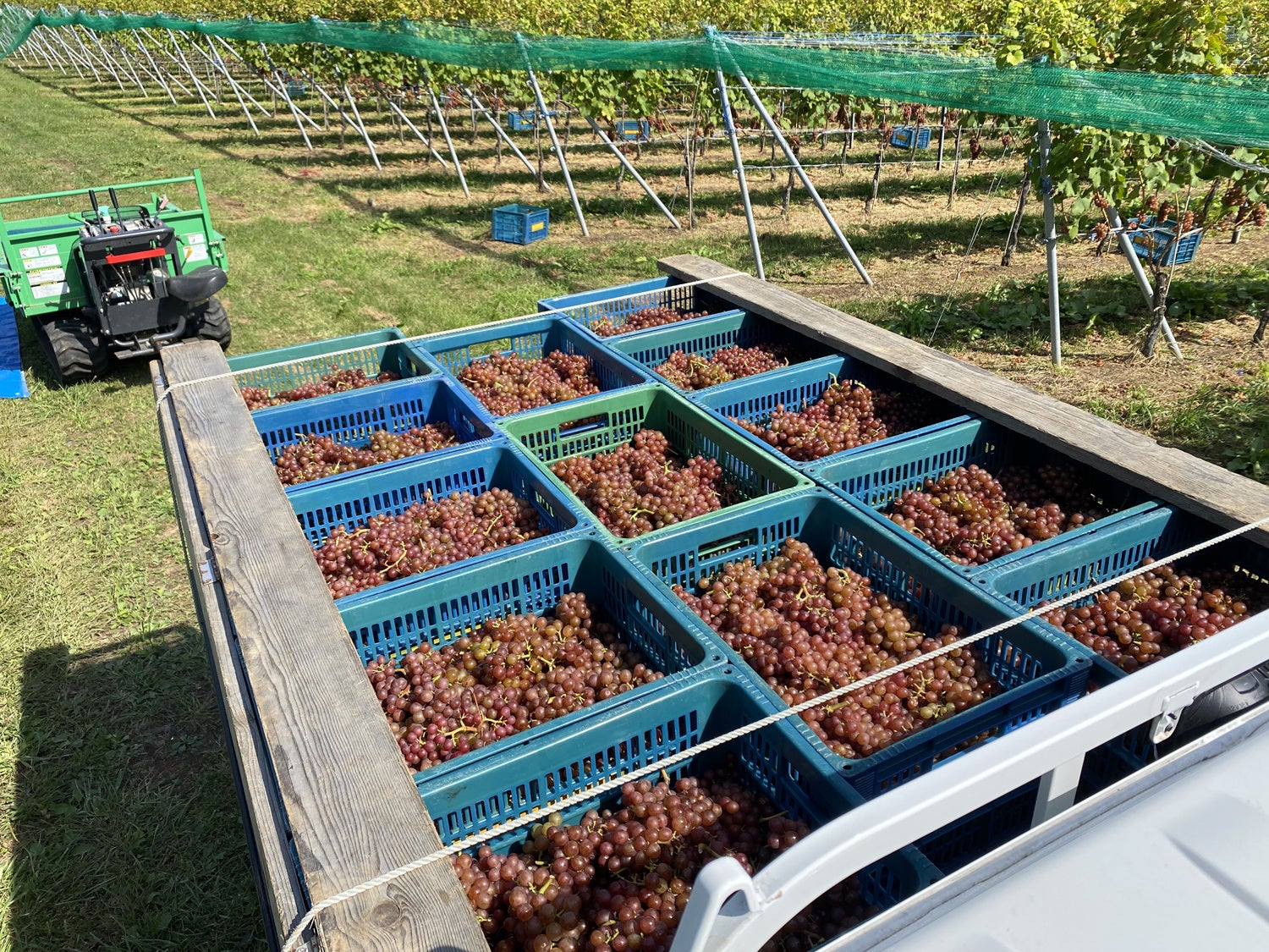 本格的なヴェレゾン期に入った9月は雨量も少なく、好天に恵まれたことにより日照時間が例年よりも多くなりました。例年であれば9月中旬より灰カビ病等の発生が確認できますが、1年間を通しての適切な圃場管理、病害虫の防除に努めたおかげで収穫を迎えることができました。収穫された葡萄は例年以上の収量となっただけではなく、非常に高い糖度とそれに負けない酸味を感じられるバランスが取れた高品質な葡萄となりました。