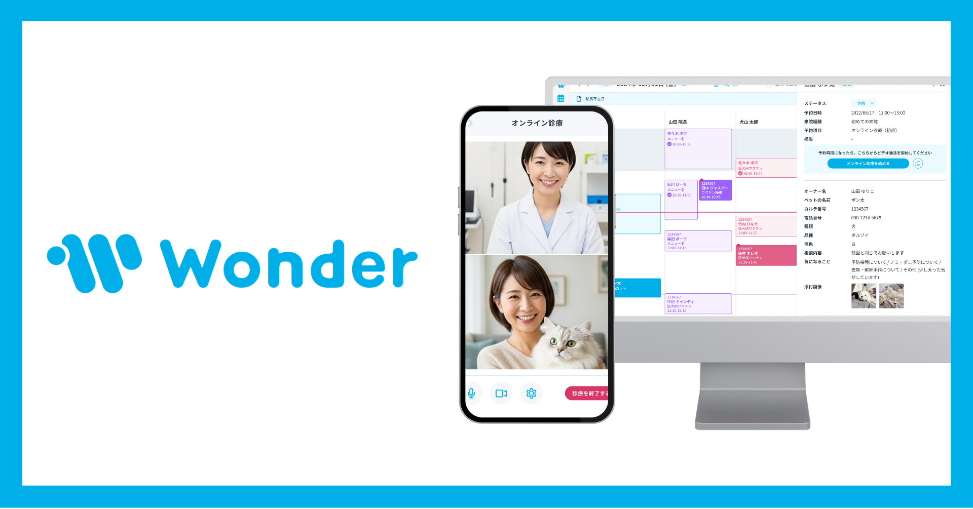 動物病院向け業務改善プラットフォーム『Wonder』がオンライン診療・相談機能を提供開始