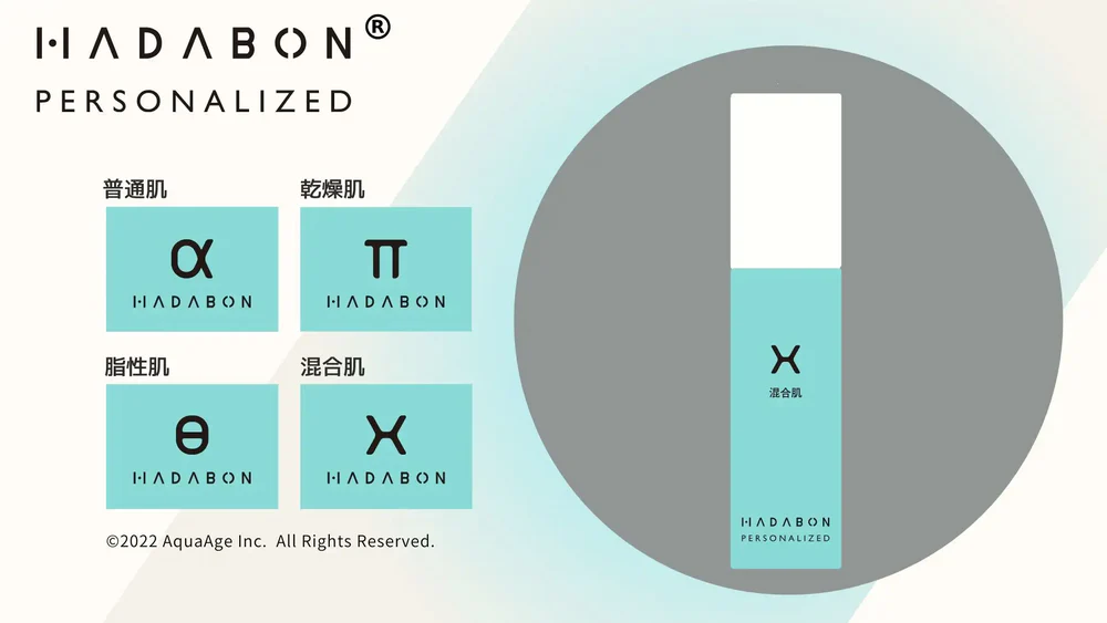さらに、AquaAge株式会社は肌タイプ別にパーソナライズされたスキンケア用品「HADABON PERSONALIZED」絶賛発売中です。