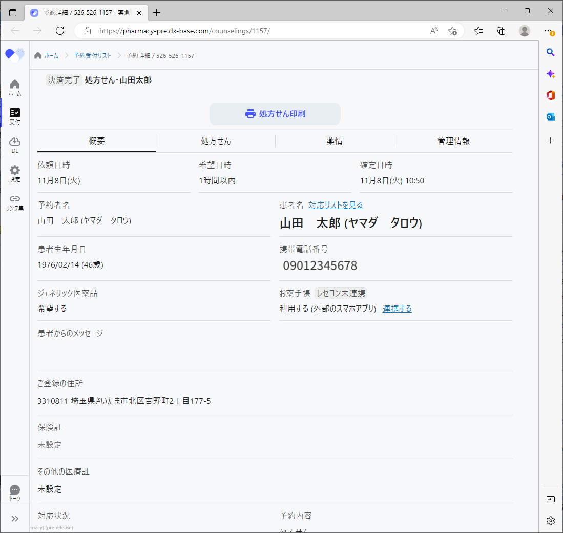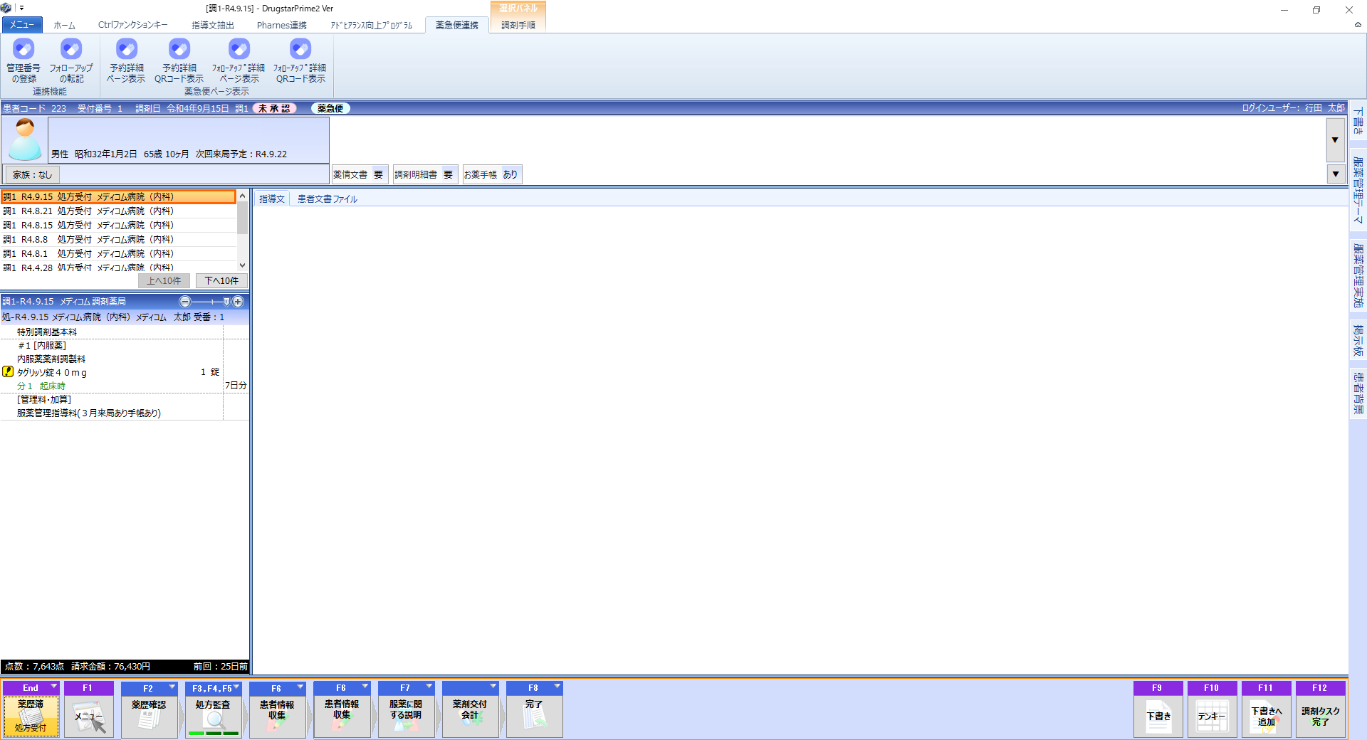 DrugstarPrime 薬歴画面(薬急便連携)イメージ