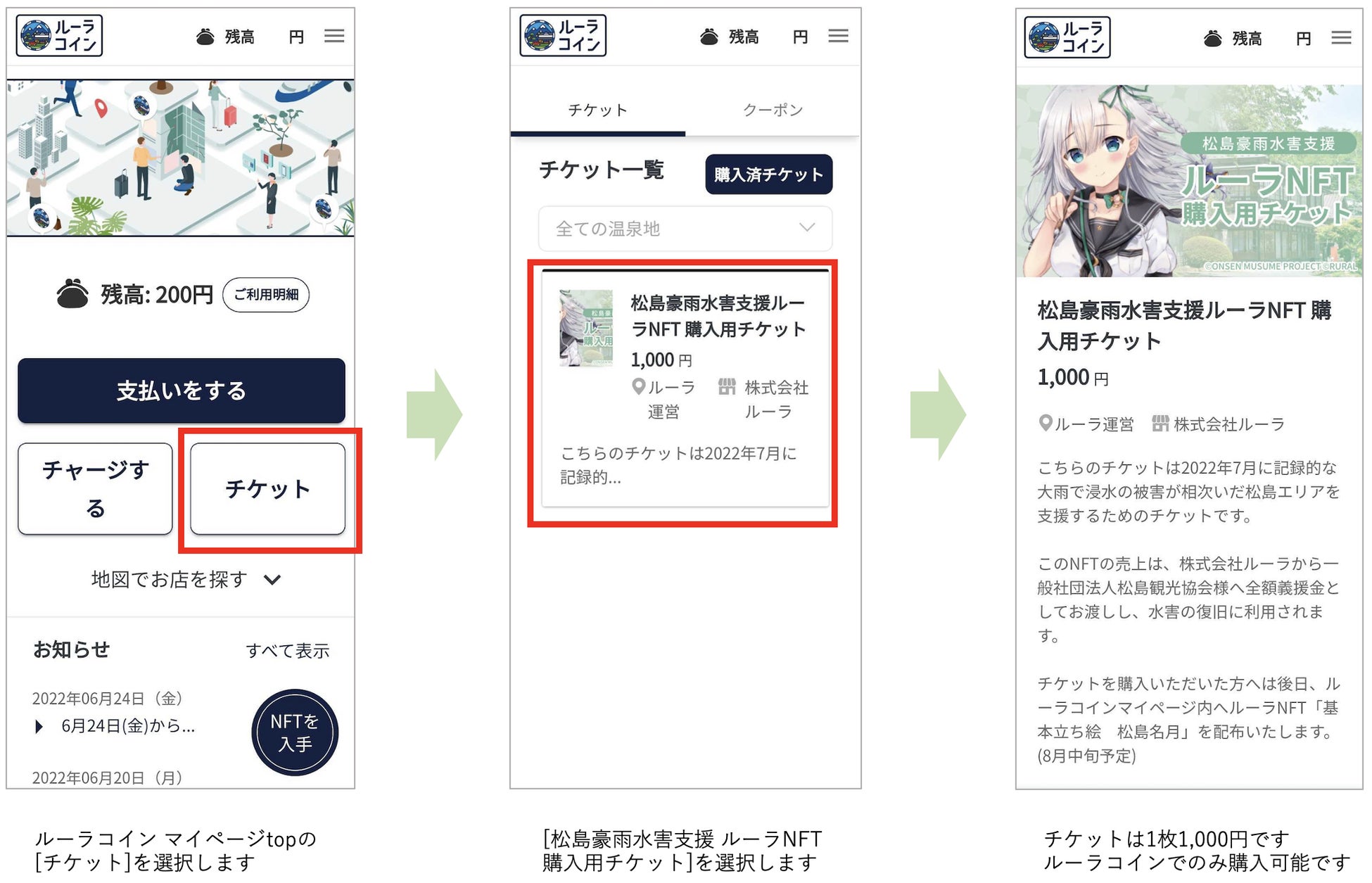 なお、2022年6月24日よりルーラNFTのテスト販売を兵庫県・有馬温泉、福島県・飯坂温泉にて開始しております。詳細はルーラコインサービスサイト(https://www.rural.ne.jp)をご確認ください。