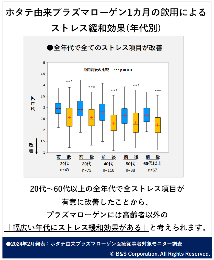 ●20代~60代以上の全年代で、全ストレス項目が有意に改善した