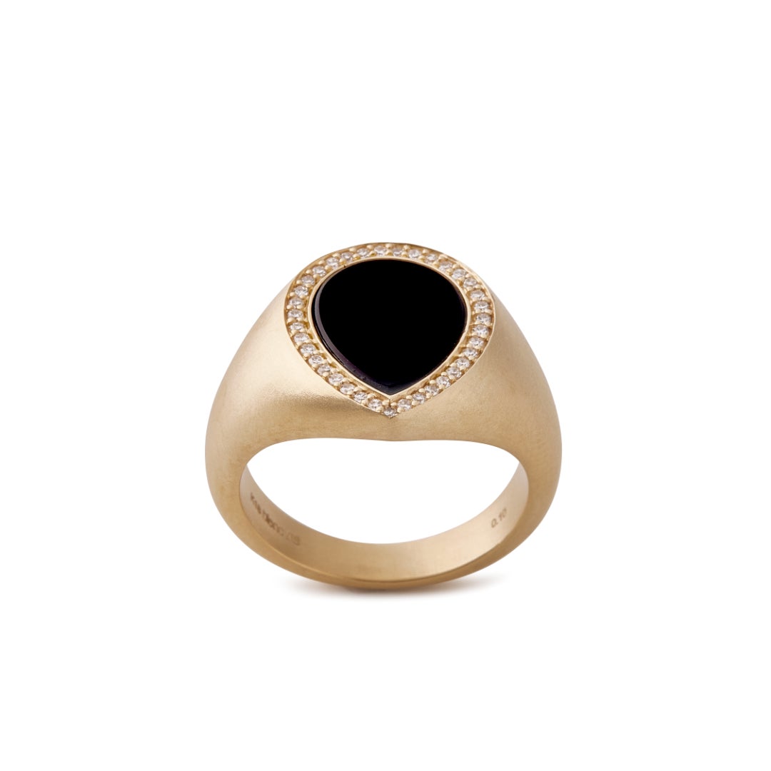 Chevalier Ring Noir(ノワール)は深いオニキスとピュアなダイヤモンドを大胆に組み合わせたデザイン。ドロップ型とオーバル型があり、洗練された存在感を放ちます。重厚な「光」と漆黒の「影」のコントラストが、身に着ける人に揺るぎない自信を与えてくれます。