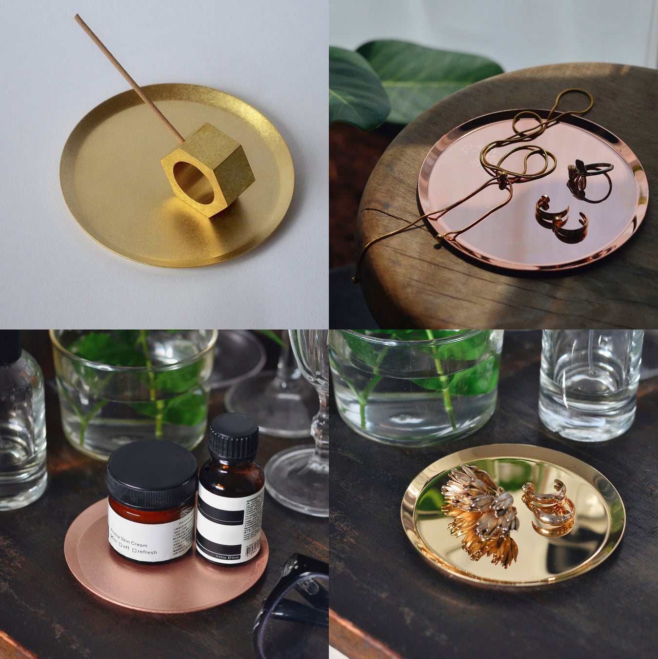 また、サイズは使いやすいφ120とφ90をご用意。アクセサリートレイや、お香立て用の香皿といった様々な用途にマルチにお使いいただくことができます。