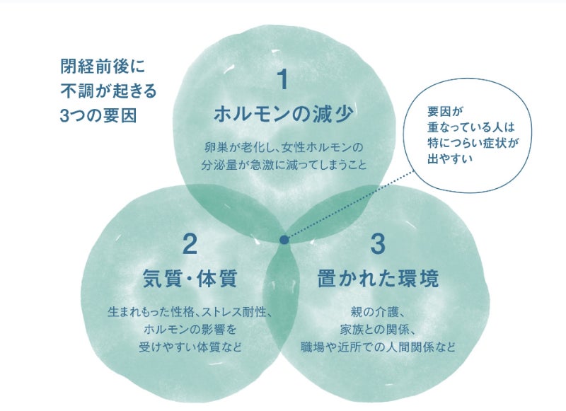 更年期の不調の程度は個⼈差が⼤きく、⼀般的に不調が起きやすい要因として「⼥性ホルモンの減少」のほか、「本⼈の気質・体質」と「本⼈が置かれた環境」が挙げられます。特に「本⼈が置かれた環境」は職場関係者の理解度や働き⽅等の影響も含まれ、また、更年期医療ではセルフケアやカウンセリングなど予防医療の分野での対応が極めて重要とされている中、仕事に⽀障をきたすほどの不調になる前に企業として対応できれば、更年期世代の働く⼥性たちが健やかに安⼼して働き続ける可能性があるのではと考えました。