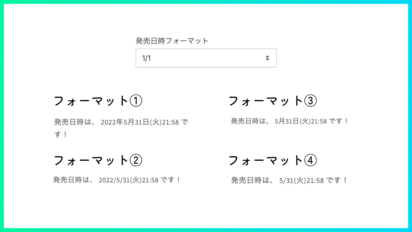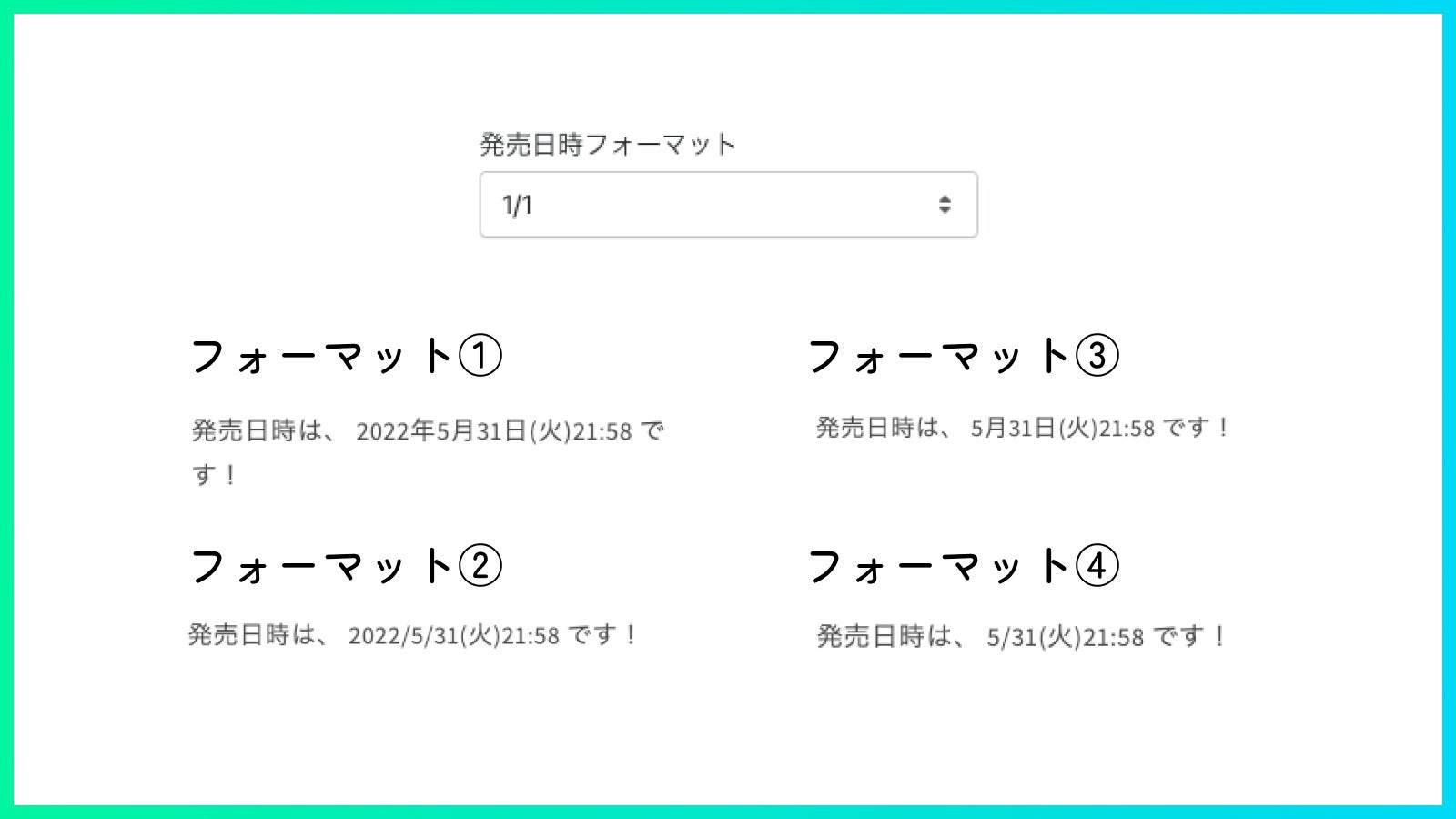 発売日時の表示フォーマットを3つ追加しました。