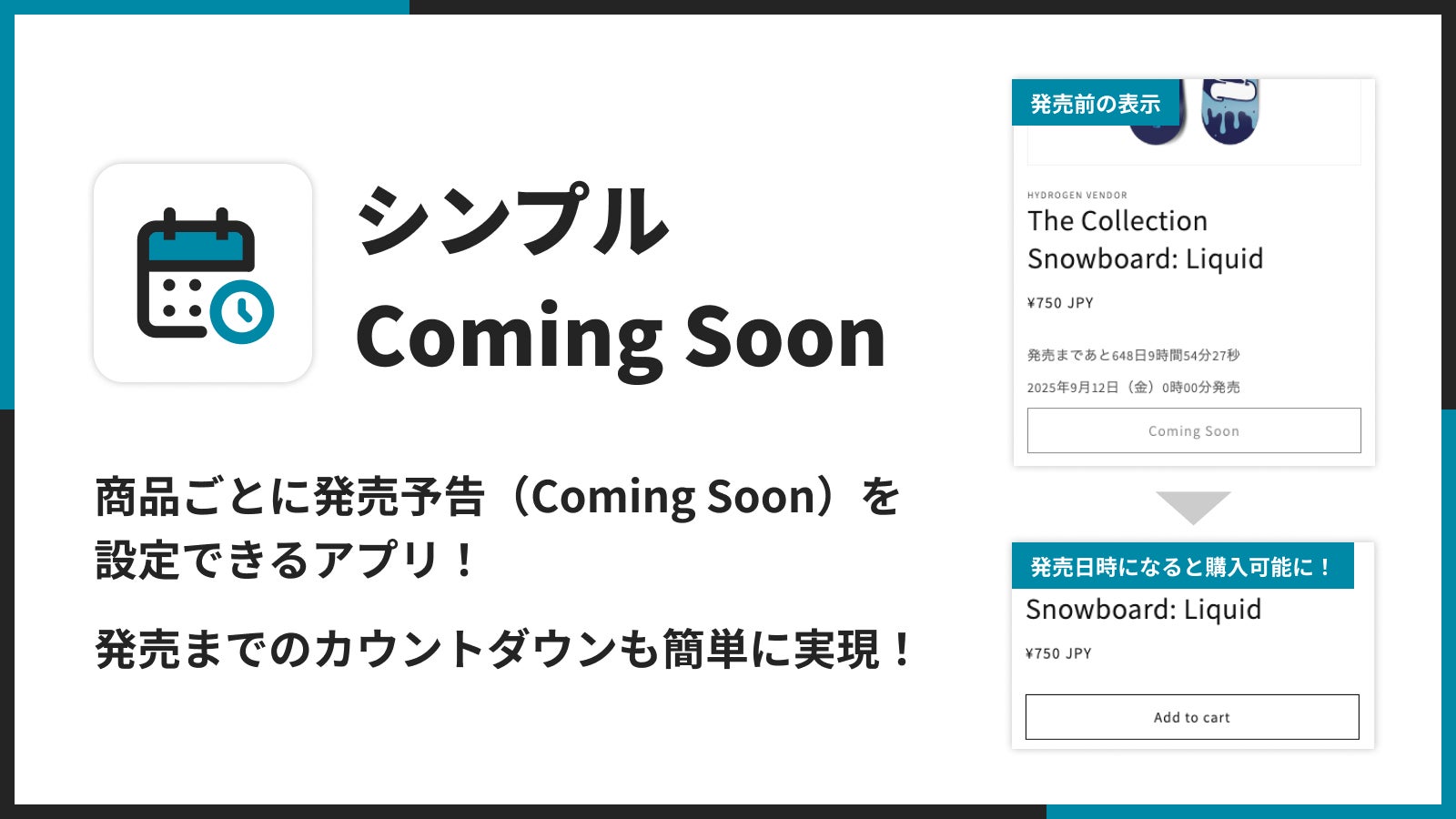 代わりに、「シンプル Coming Soon|商品ページ発売予告アプリ」を使用してください。