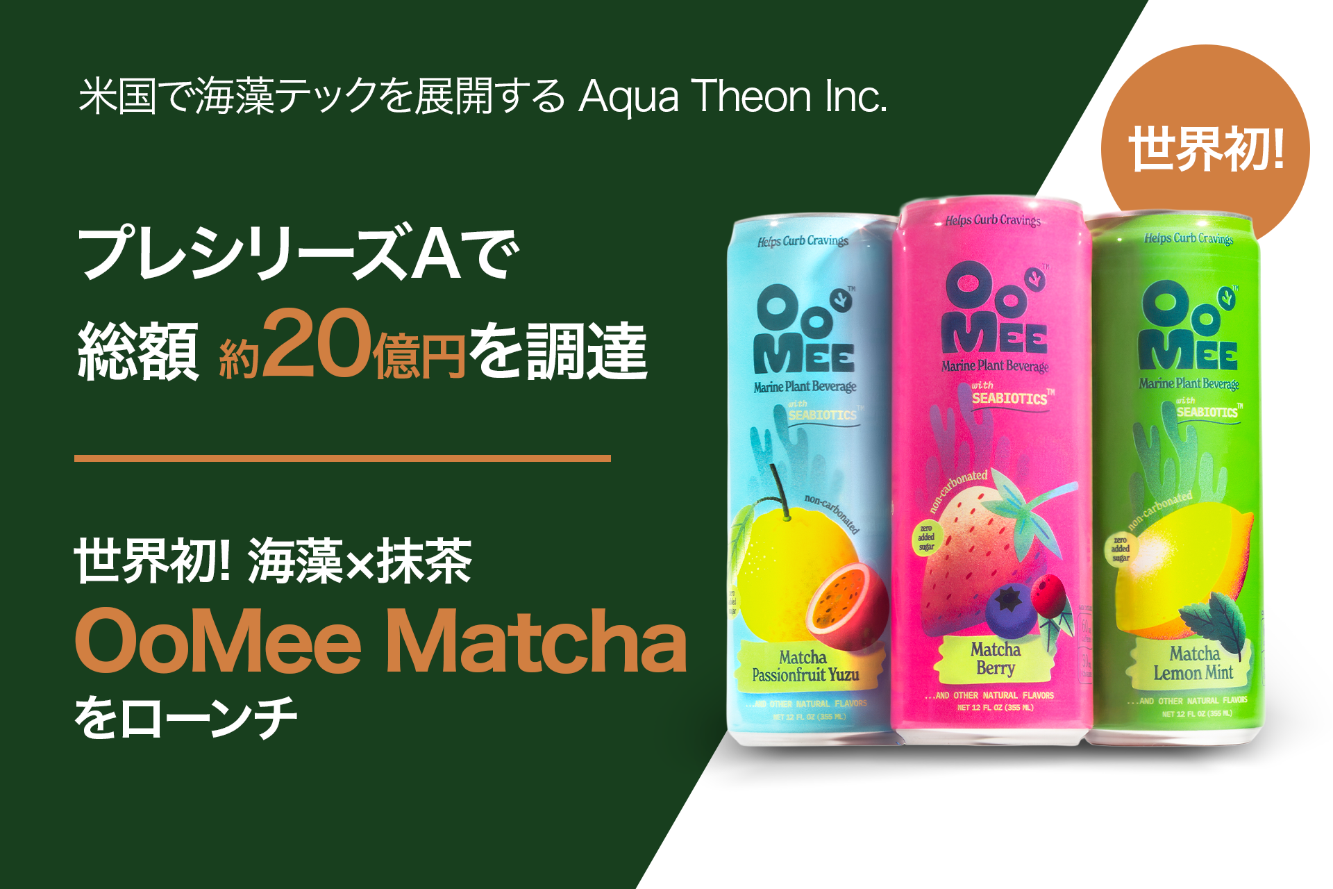 ロサンゼルスで和菓子D2C「MISAKY.TOKYO(ミサキ・トウキョウ)」、海藻機能性飲料「OoMee(ウーミー)」を筆頭に、海藻を使ったフードテック事業を展開するAqua Theon Inc. (本社:カリフォルニア州ロサンゼルス、CEO :三木 アリッサ)は、2026年1月プレシリーズA 3rdとして未来創生3号ファンド(運営:スパークス・アセット・マネジメント株式会社)、Beyond Next Ventures株式会社、株式会社静岡新聞社より約8億円の調達を実施し、プレシリーズAでの調達総額が約20億円となったことをお知らせいたします。 また、海藻機能性飲料「OoMee Matcha」を公式にローンチいたしました。
