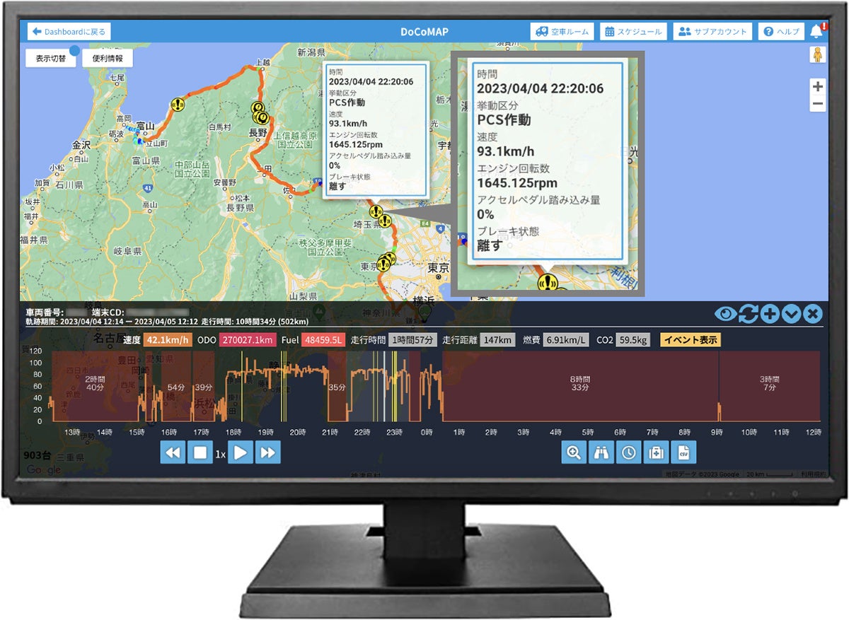 今回新たに提供するプレミアムプランでは、対象車両の位置情報や走行履歴、車両の速度表示などベーシックプランの機能に加え、環境問題に取り組む企業へのサポートを充実させるほか、安全装置の作動状況を確認できるなど、ドライバーの安全運転の意識向上に貢献します。
