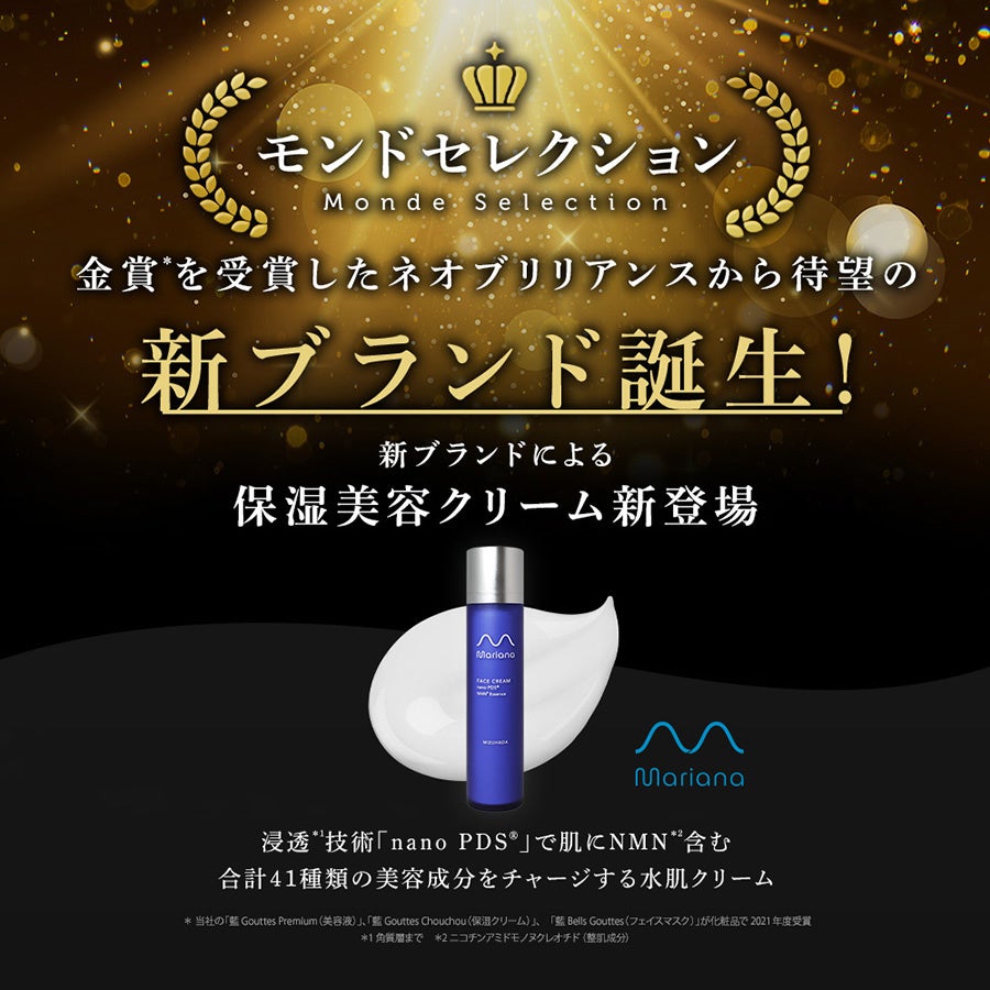 NEO BRILLIANCE株式会社(本社:大阪市港区 代表堀川忠彦)が次なるブランドとしてこれまで以上に実感できるスキンケアブランド「Marianaシリーズ」を開発。まずはフェイスクリームとして「Mariana水肌クリーム」を1月14日に予約販売を開始します!