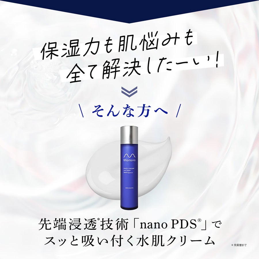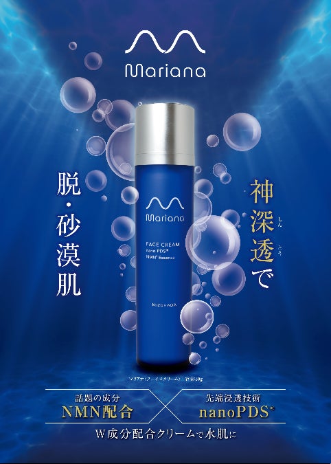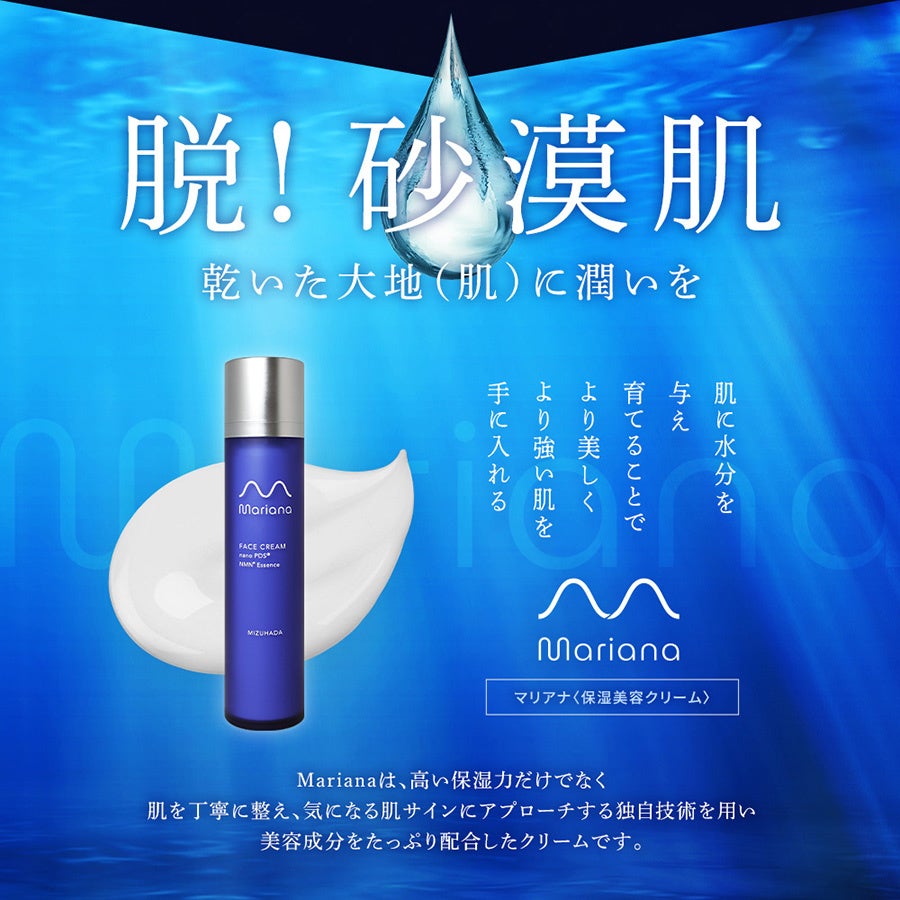 乾いた肌に潤いを!気になる年齢悩みにもアプローチ!浸透*技術で一日中うるおい、もっちり肌に導く「Mariana水肌クリーム」誕生!