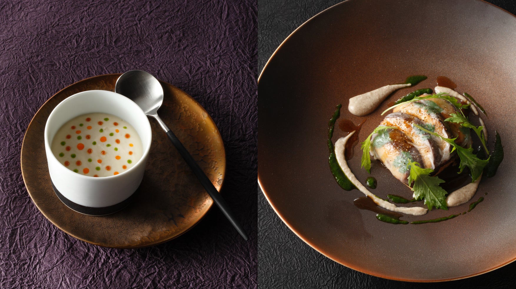 料理長である飯塚シェフの信条は、素材を慈しみ、素材の味わいをピュアなおかつシンプルに表現すること。生産者の思いを繋ぎ、日本人だからこそ使いこなせる和の食材を、その旬に合わせ、日本の四季を感じられるフランス料理に昇華した逸品の数々は多くの食通をうならせてきました。