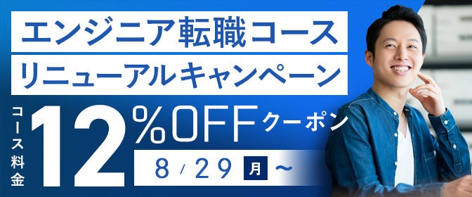 今回のコースリニューアルを記念して、受講料が12%OFFになるクーポンを配布しています。今年〜来年(2023年)にかけてエンジニアへの転職を目指している方は、この機会にぜひ受講を検討ください。