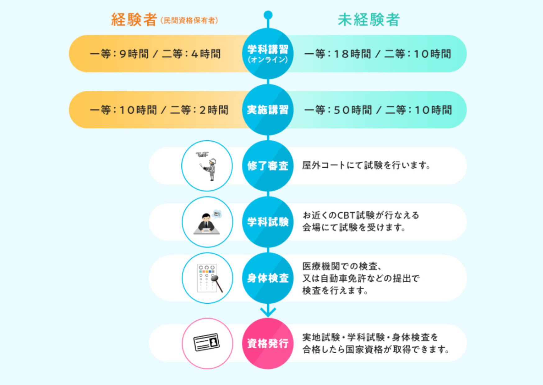一等資格と二等資格を取得するためには、2つの方法があります。