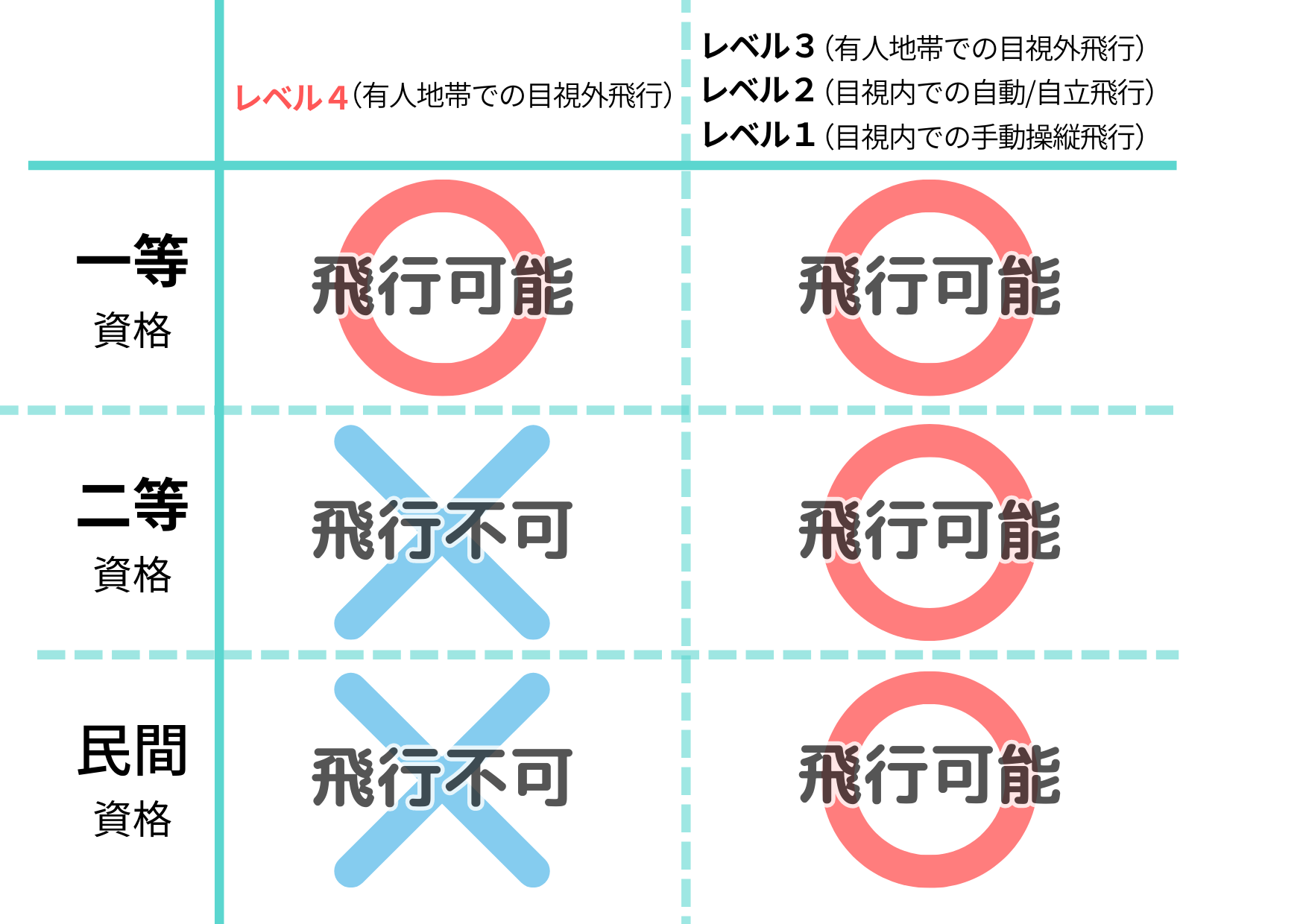 2022年12月5日以降、一等無人航空機操縦士(一等資格)の資格保有者は、これまで認められていなかったレベル4での飛行が可能になりました。
