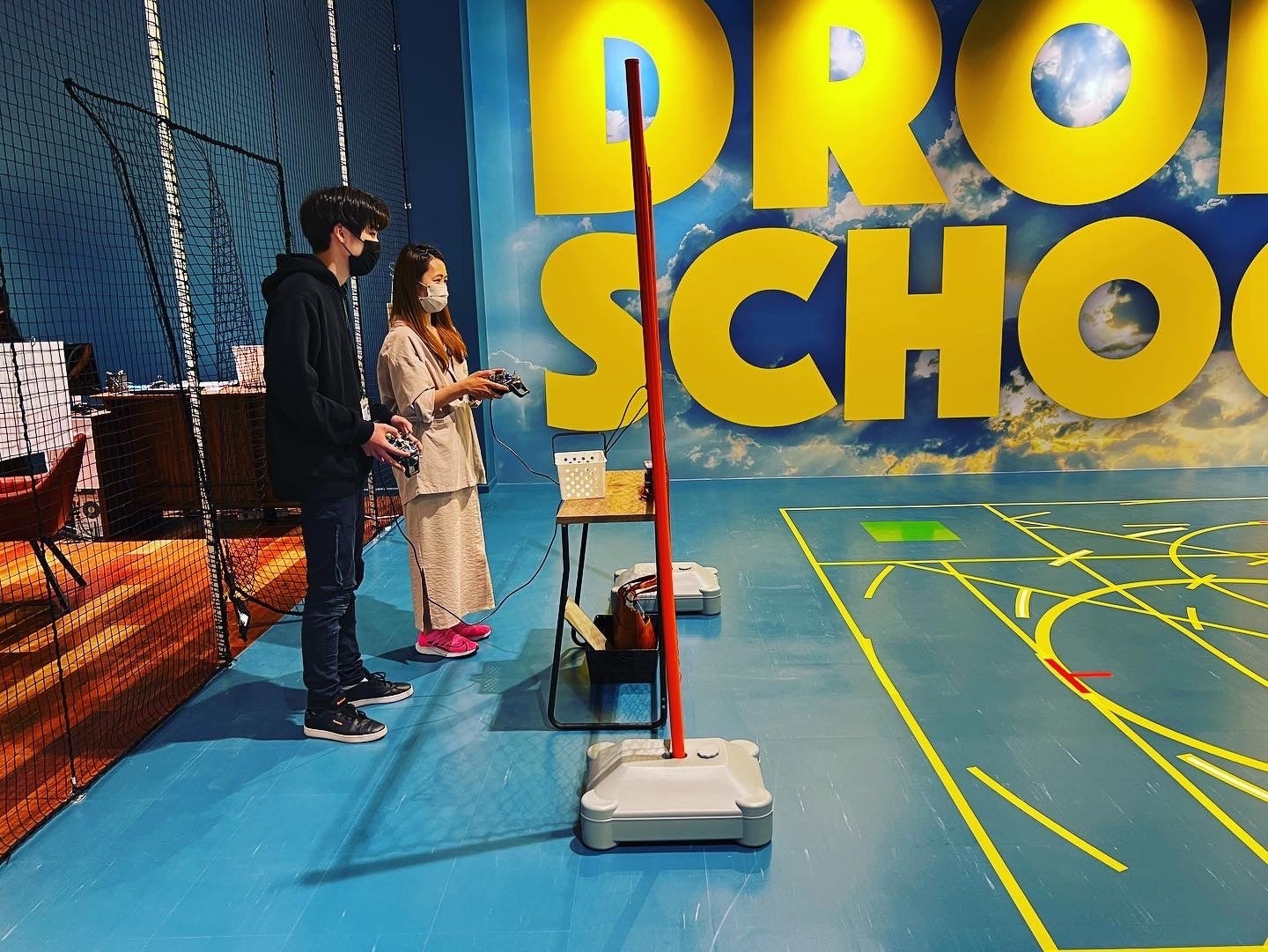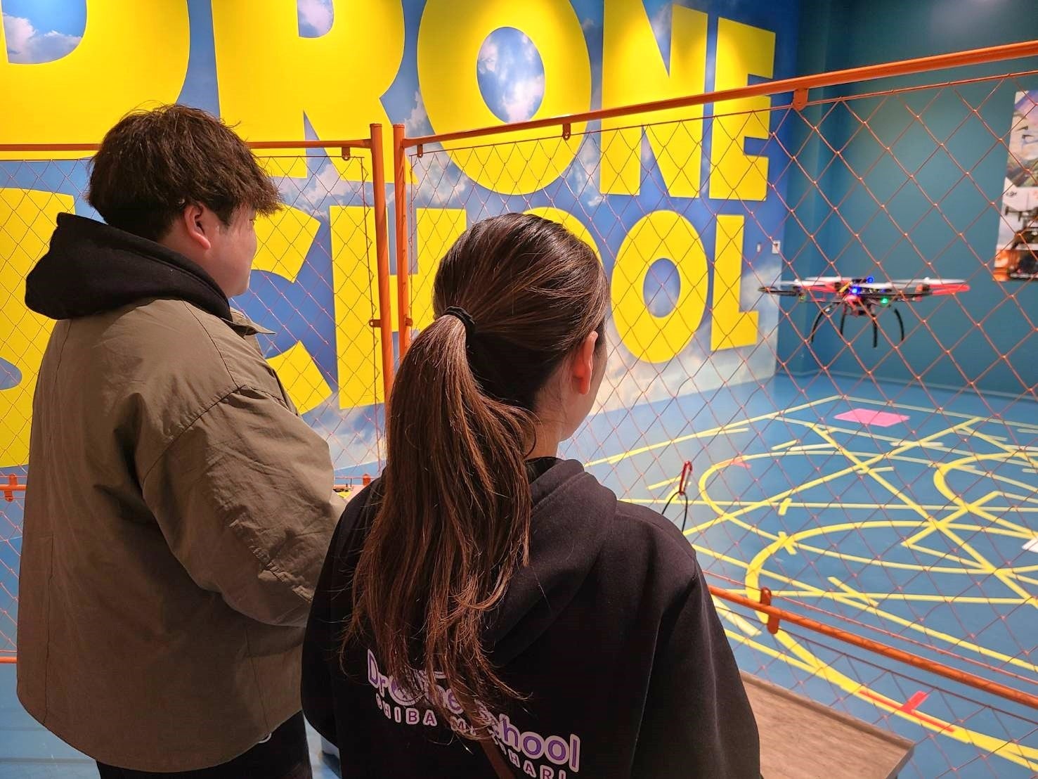 千葉県初、⼤型商業施設内併設型で全天候型に対応しており、更にイオンモール幕張新都⼼敷地内の臨時平⾯駐⾞場(3 188.96坪)も活⽤できるという屋内・屋外に対応したドローンを学ぶ上で、万全の環境を整えております。