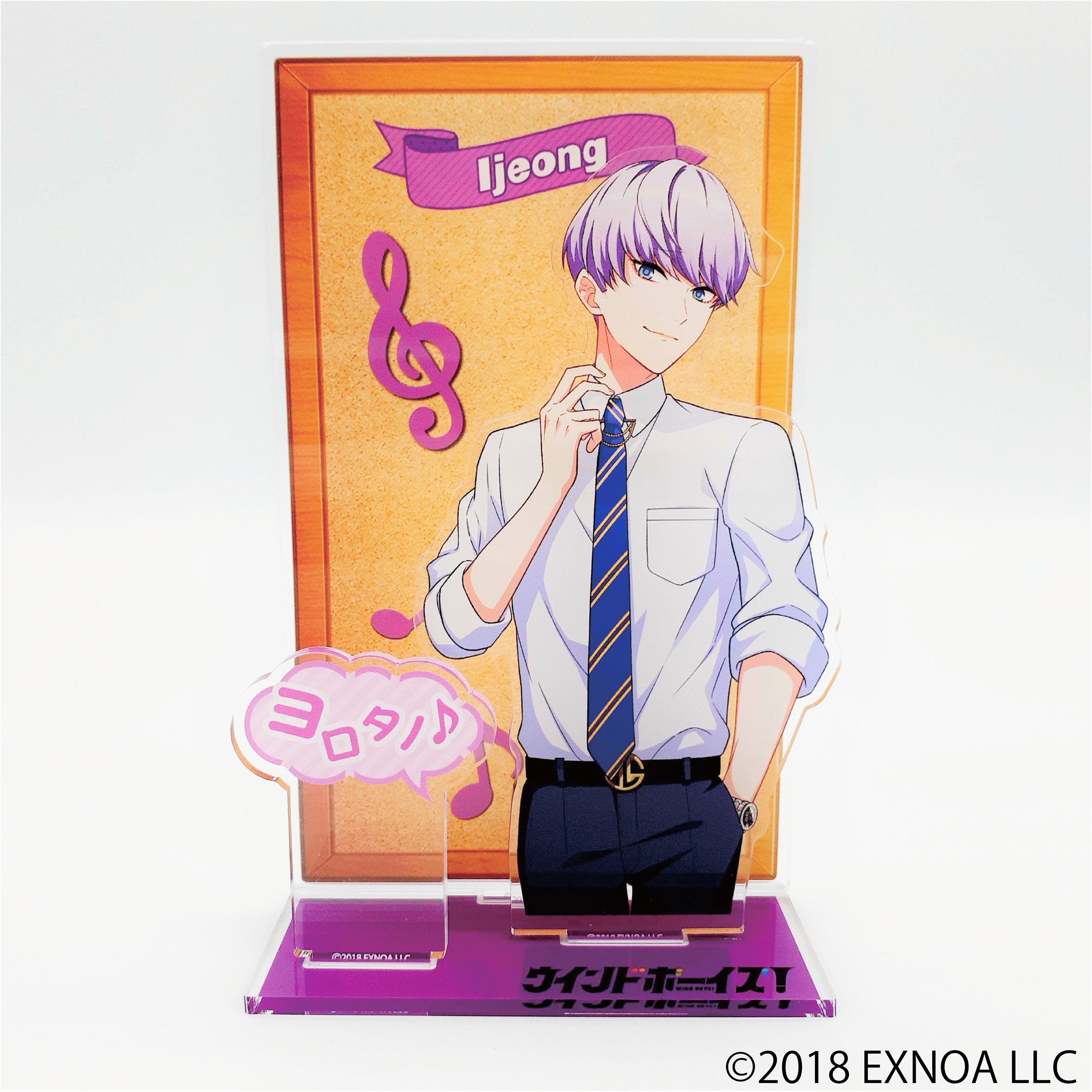 ゲーム内の「マイボード」風の背景と、各キャラクターのセリフを用いた印象的なアクリルジオラマです。