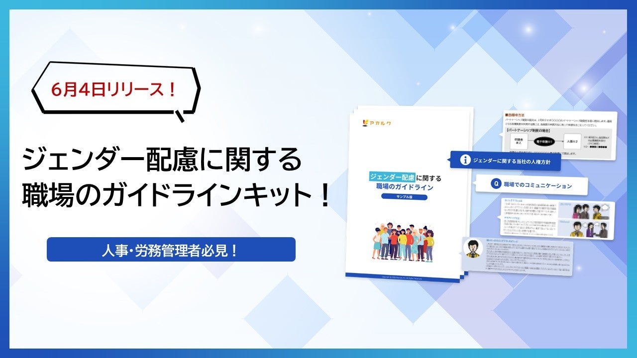 法人向けにDE&I 推進サポートに取り組む株式会社アカルク(本社:大阪府大阪市、代表取締役社長:堀川歩)は、ジェンダー配慮に関する職場のガイドラインが作成できるキットを新たにリリースします。