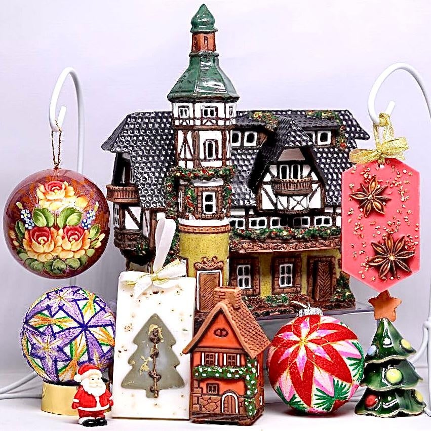 マトリョシカ・キャンドルハウス・アロマ サシェ・チョコレート・紅茶・その他オーナメントなどクリスマス商品群を沢山用意しています。