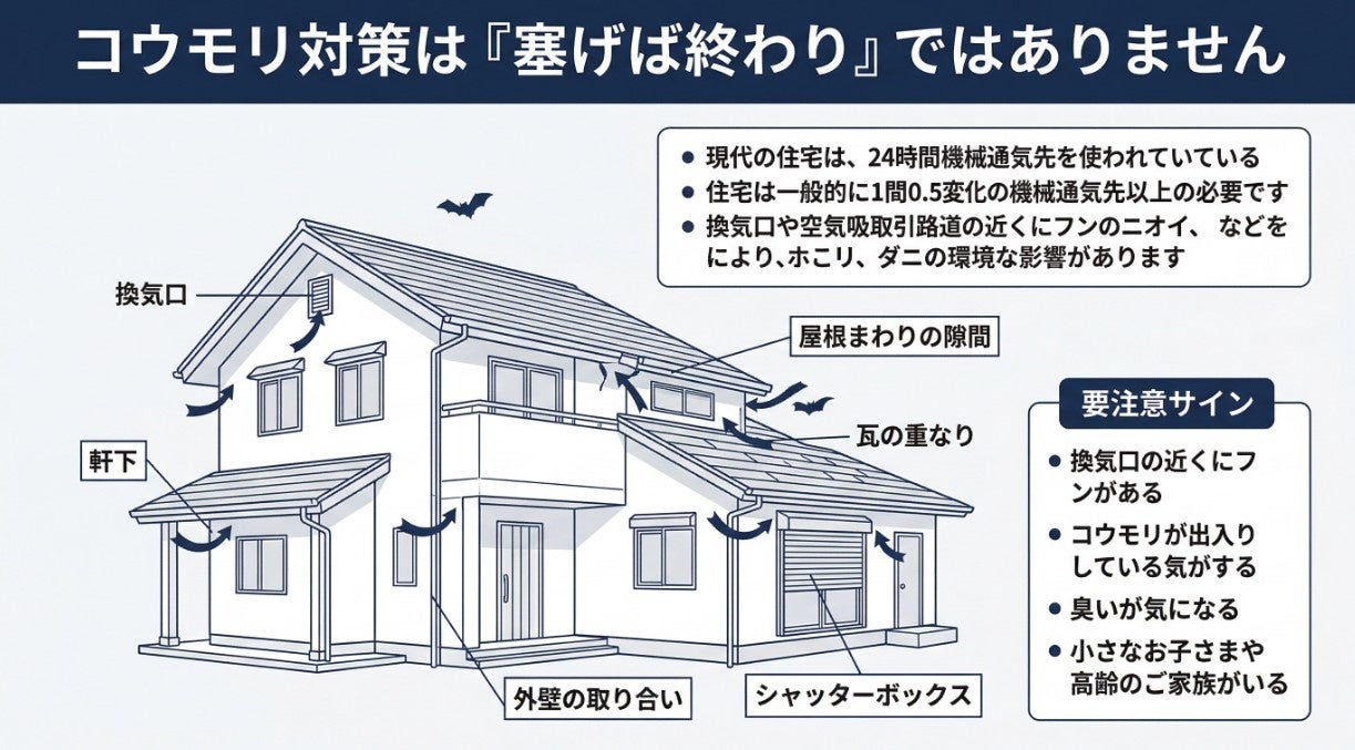 ■ コウモリ対策は「塞げば終わり」ではありません 家を守るには建物の知識が必要です