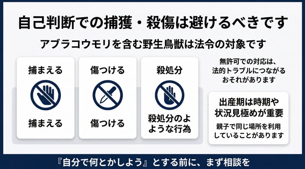 ■ 【重要】無許可での捕獲・殺傷は法的トラブルにつながるおそれがあります