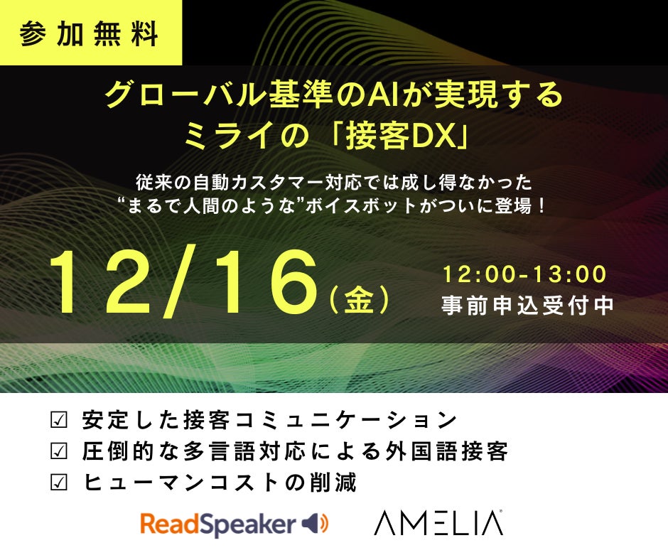 <2022年12月16日開催>AI音声のグローバルリーディングブランド「ReadSpeaker」とアメリカ発の対話型AIサービス「Amelia」によるウェビナーの無料開催が決定!
