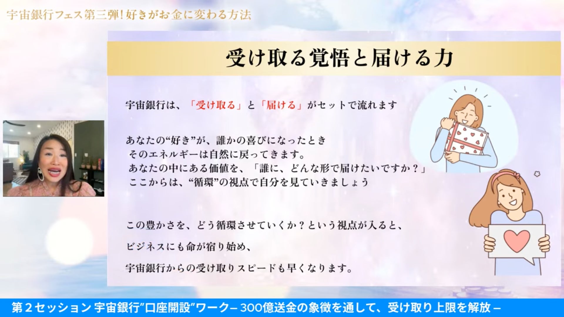 セミナーおよび各種講座の企画・開催、企業研修、コンサルティングなどを手掛ける株式会社ブリッジインターナショナル(本社:東京都港区、代表取締役・小熊弥生)は、2025年11月23日にオンラインイベント「宇宙銀行フェス第三弾! 好きがお金に変わる方法」を開催しました。当日のライブは約650名が参加、動画再生回数は5,000回を超えました(2025年11月30日現在)。