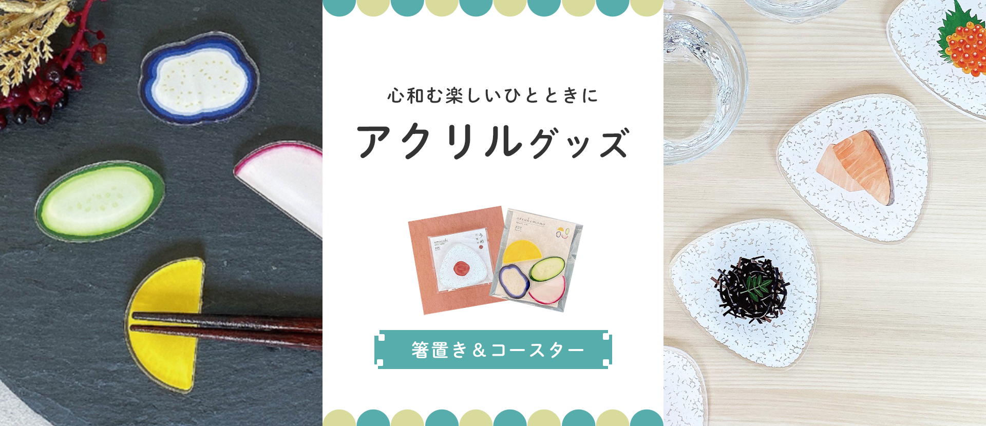 最近ではおむすびのコースターやたくあんの箸置きなどユニークな商品展開もされています。