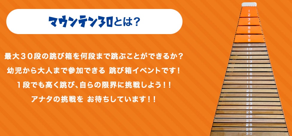 子ども向け総合スポーツクラブであるオールアルビレックス・スポーツクラブより、「マウンテン30」という名称の30段跳び箱イベントを開催します。