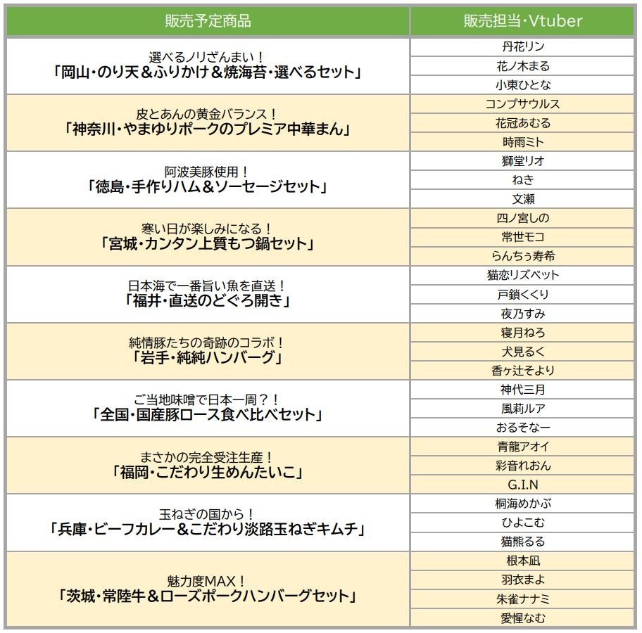 JAタウンの出店商品から肉・魚・加工品などこだわりの10商品を選定。根本凪さんをはじめとした、人気VTuber31名が売り子となって販売会を行います。