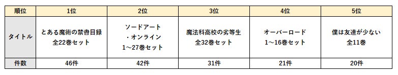 ・調査方法:ブックサプライ独自の買取システムより買取依頼のあった漫画セット各部門買取件数10タイトルの買取件数を計算