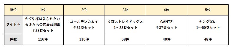 2023年漫画セット買取件数ランキングTOP10を発表!漫画買取専門店が独自調査