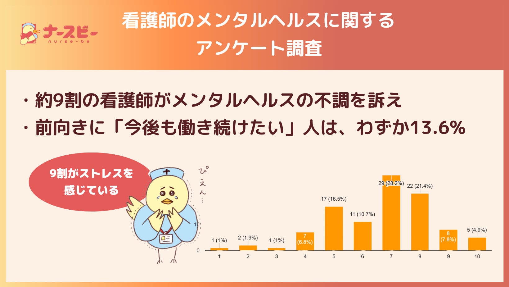 〜ナースビーの看護師の約9割がメンタルヘルス問題を抱えていると回答〜