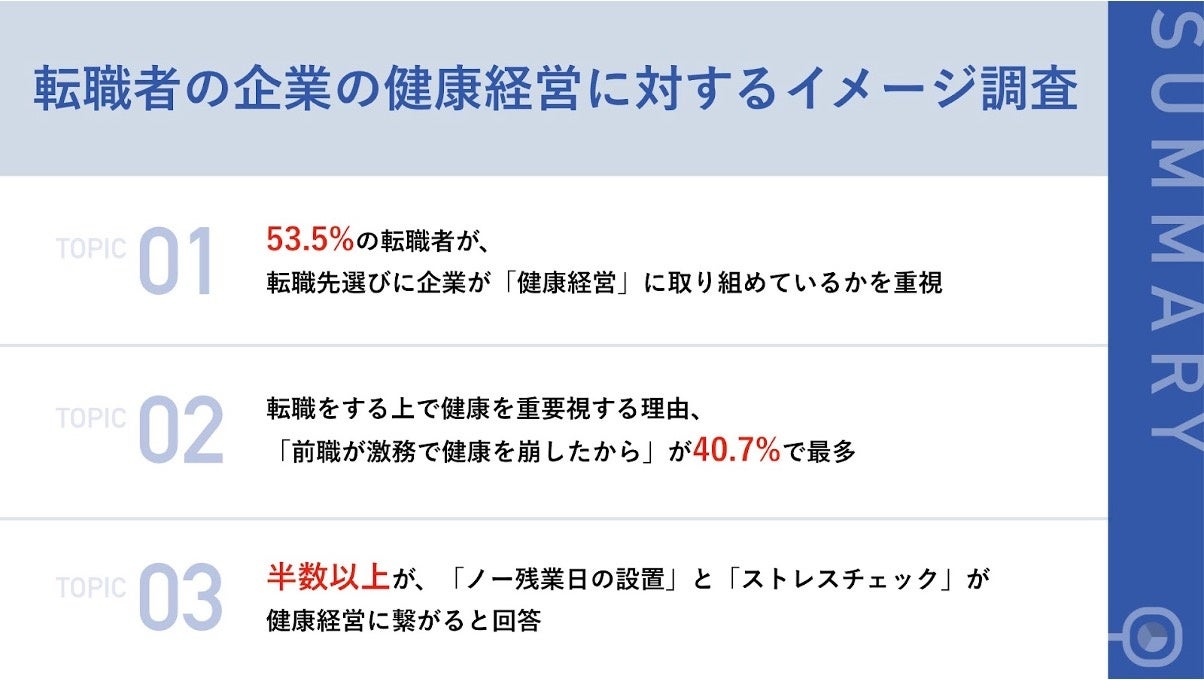 コロナ禍転職者、半数以上が転職先選びの際に企業の「健康経営」を重視 理由として「前職が激務で健康を崩したから」が最多