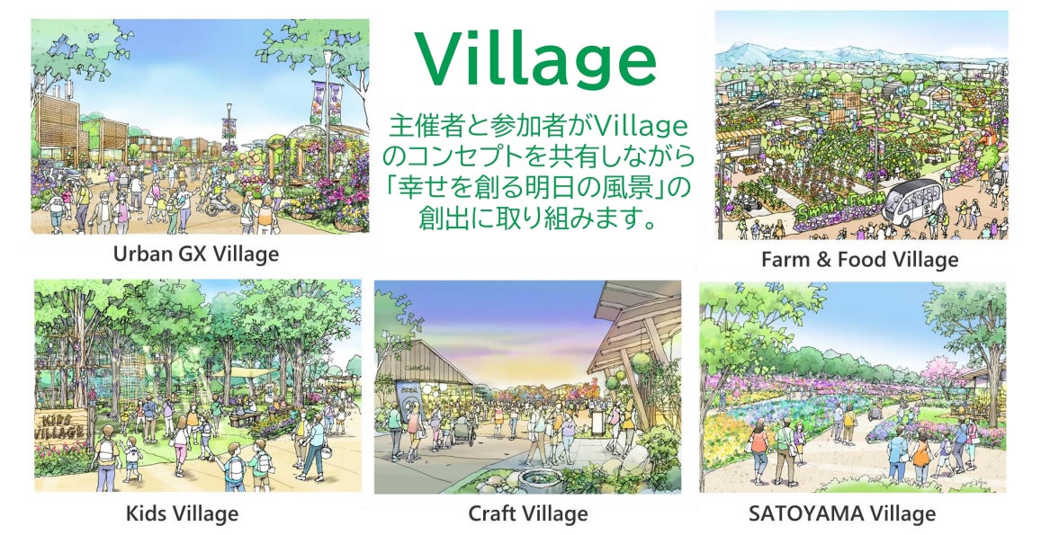 市民や企業など多様な参加者が、コンセプトを共有しながら「幸せを創る明日の風景」を創り上げる共創事業「Village」。その中核となる、カーボンニュートラルやネイチャー・ポジティブなど、新たなグリーン社会実現に向けた企業による出展です。