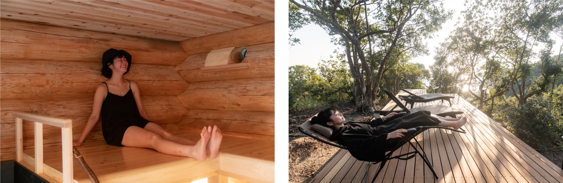 この自然をより五感で感じていただくため、フィンランドサウナの「心地よさ」と日本のサウナの「ととのい」を兼ね備えたサウナが2023年冬に完成しました。