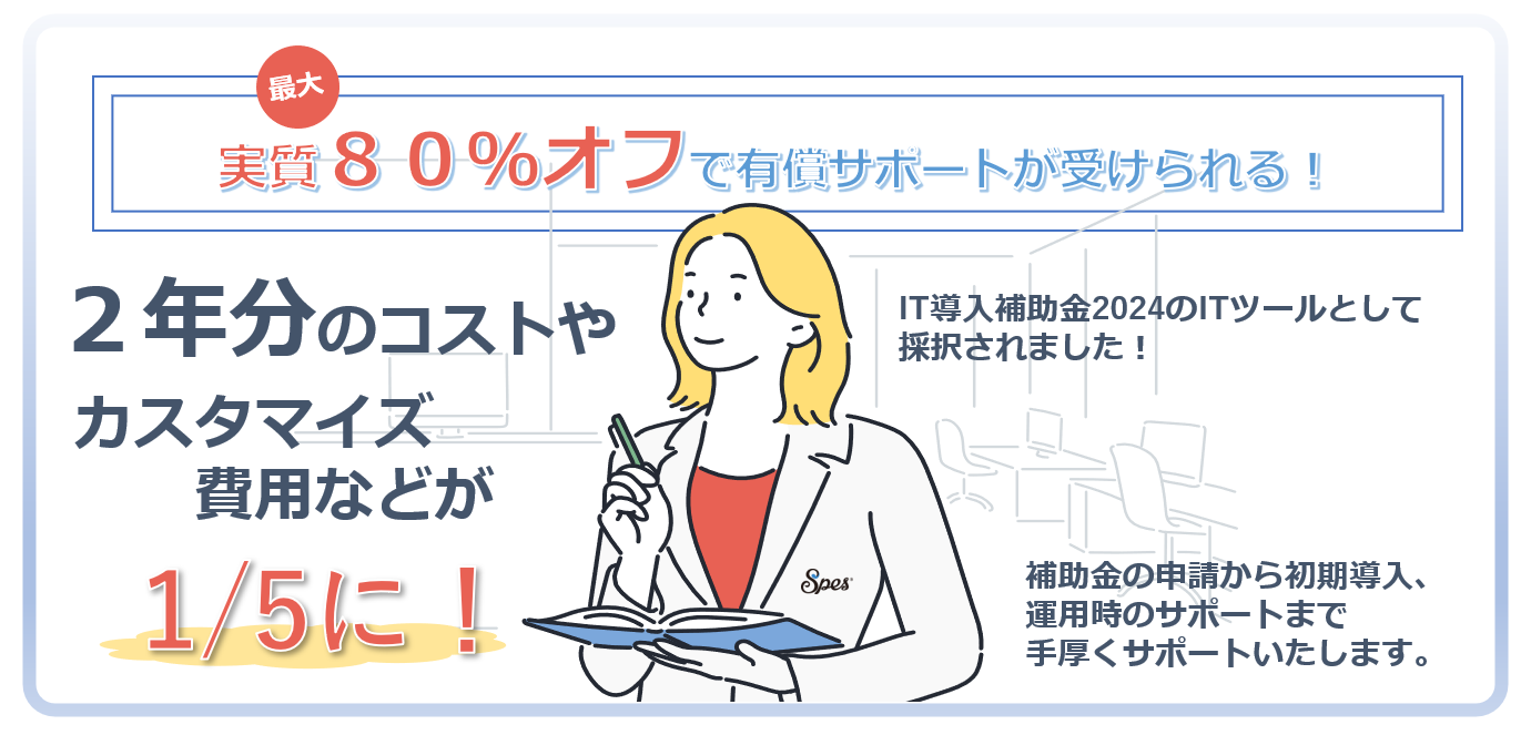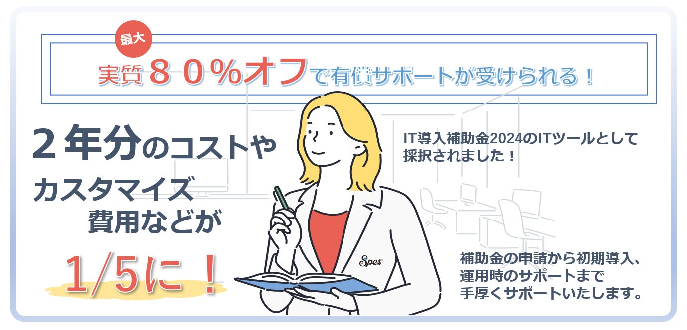 この度当社のクラウドソフト「Spes(スペース)」が、補助金などを活用した企業のIT化・DX化を推進するシステムクラウド株式会社(本社/滋賀県)を支援事業者として連携し、2024年度のIT導入補助金におけるITツールとして採択されました。
