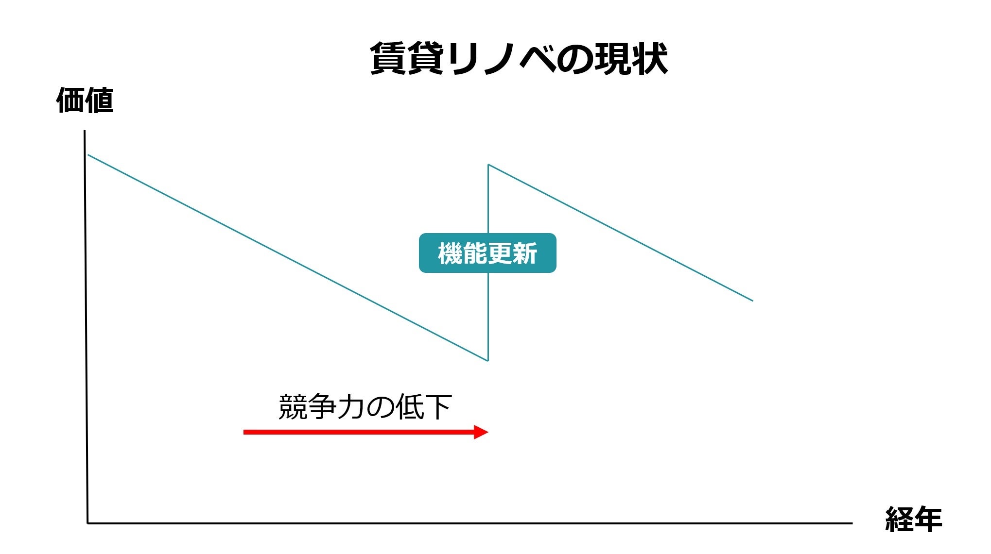 この場合、築後15年を過ぎたころから競争力が失われているにも関わらず何もしない時期が続き、入居促進のために家賃を下げたり、フリーレントなどで条件を緩和することがほとんどでした。