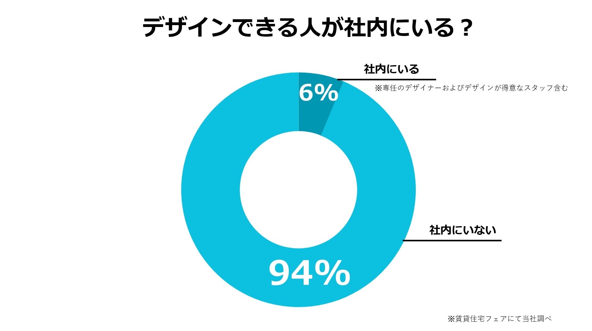 ブース来場者へのヒアリング集計で浮き彫りになったのは、社内に専任のデザイナーもしくはデザインが得意な人材がいない会社が94%もあるということ。