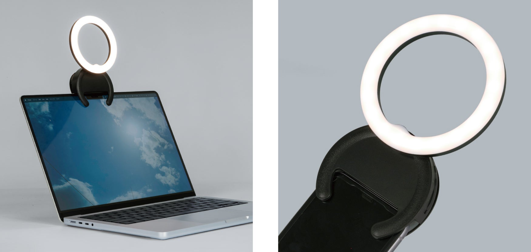 WEB カメラを使用したビデオ通話や動画配信等のシーンで表情を明るく映せるLED リングライトです。