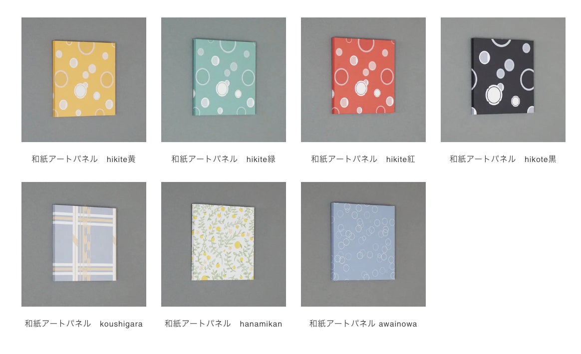アートパネルとは、壁紙や和紙などの素材を、木製や発泡スチロールの土台に張り込んで作ったアートです。今回の和紙アートパネルは、waccaraのコンセプトであるふすま柄を使用して作っています。7種類販売していますのでぜひご利用いただければと思います。