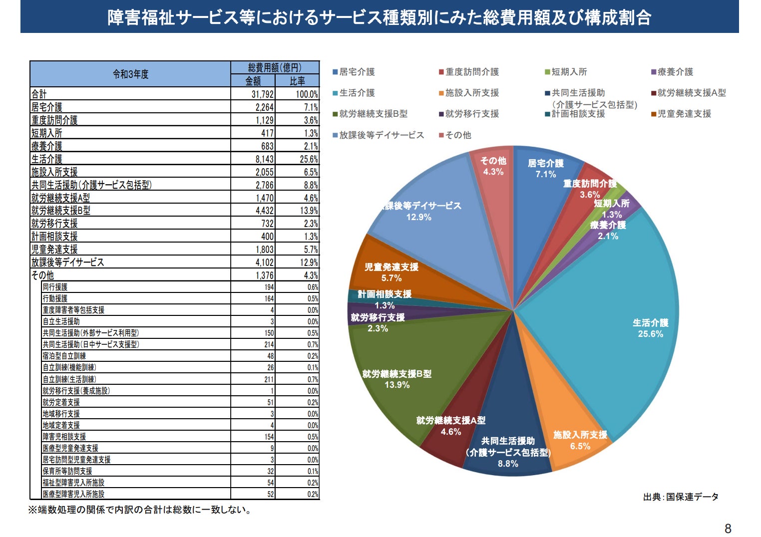 福祉施設での虐待を受けた人数/相談・通報件数は増加傾向で令和3年度は956人となっています。専門資格が不要な「生活支援員」からの虐待が37.2%と多いのが現状です。支援内容ではなく「通所した事実」「手書きの記録書面」をもとに報酬が発生するため記録の捏造が簡単にできてしまい書類捏造による不正請求も多いと言われています。