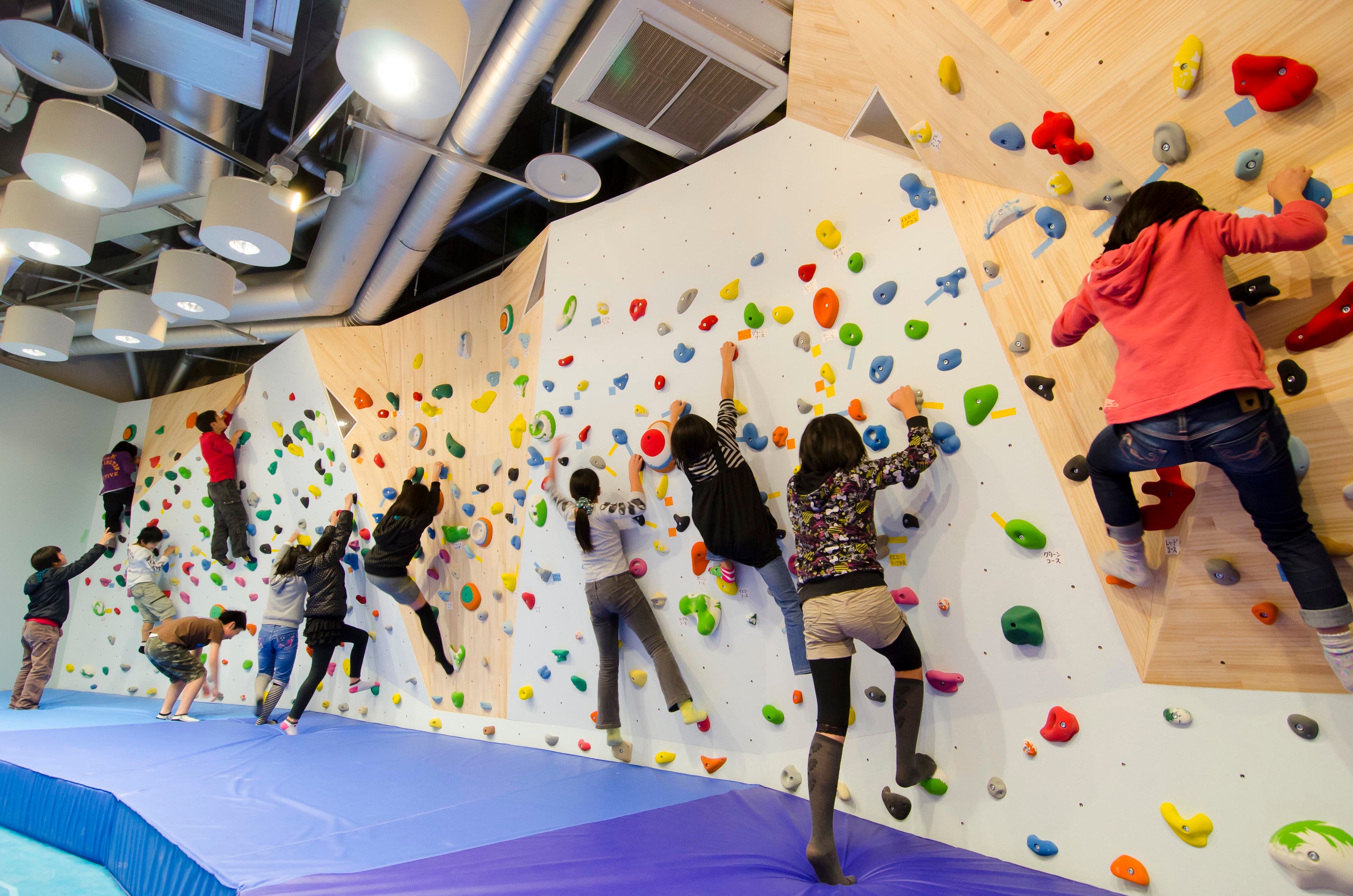 ・大人も子どもも楽しめる高さ7.5メートルのクライミングウォール(がんばるウォール)、子どもたちのための幅10メートルのクライミングウォール(クライミングぱーく)が無料で利用できます。