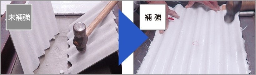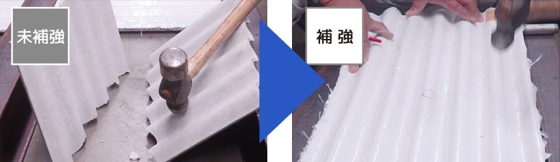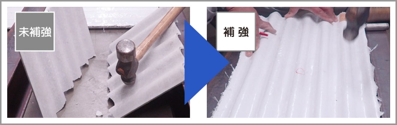 ①新素材の表面処理効果で、対象物と一体化。強力な補修・補強を実現!