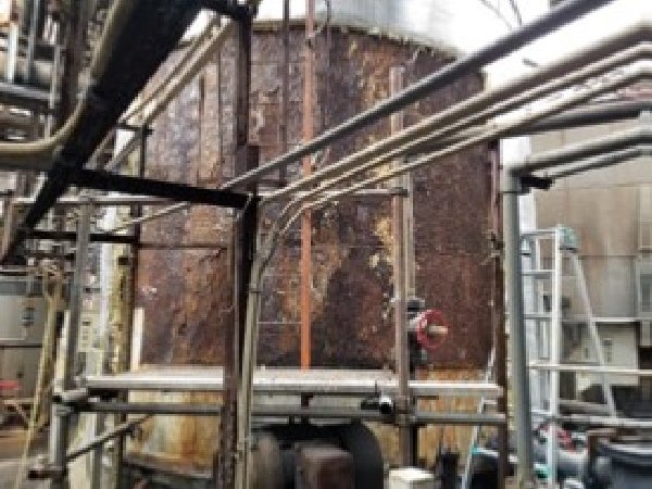 工場に設置されているタンクにて、金属が腐食してしまい、水漏れが発生していました。