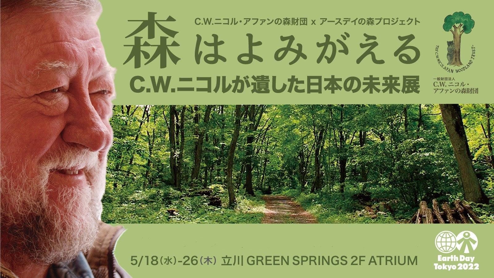 2020年4月3日に永眠したニコルのスピリットを引継ぎたいとの思いから、アースデイ東京の実行委員の有志たちにより2022 年アファンの森に隣接する荒廃した森を甦らせるプログラムを展開する、アースデイの森プロジェクトが立ち上がりました。また、アファンの森財団設立20周年と併せて、C.W.ニコルが日本の未来のために森を遺したその軌跡を紹介する『森はよみがえる』C.W.ニコルが遺した日本の未来展を、5月の生物多様性の日に合わせて、GREEN SPRINGSで開催いたします。